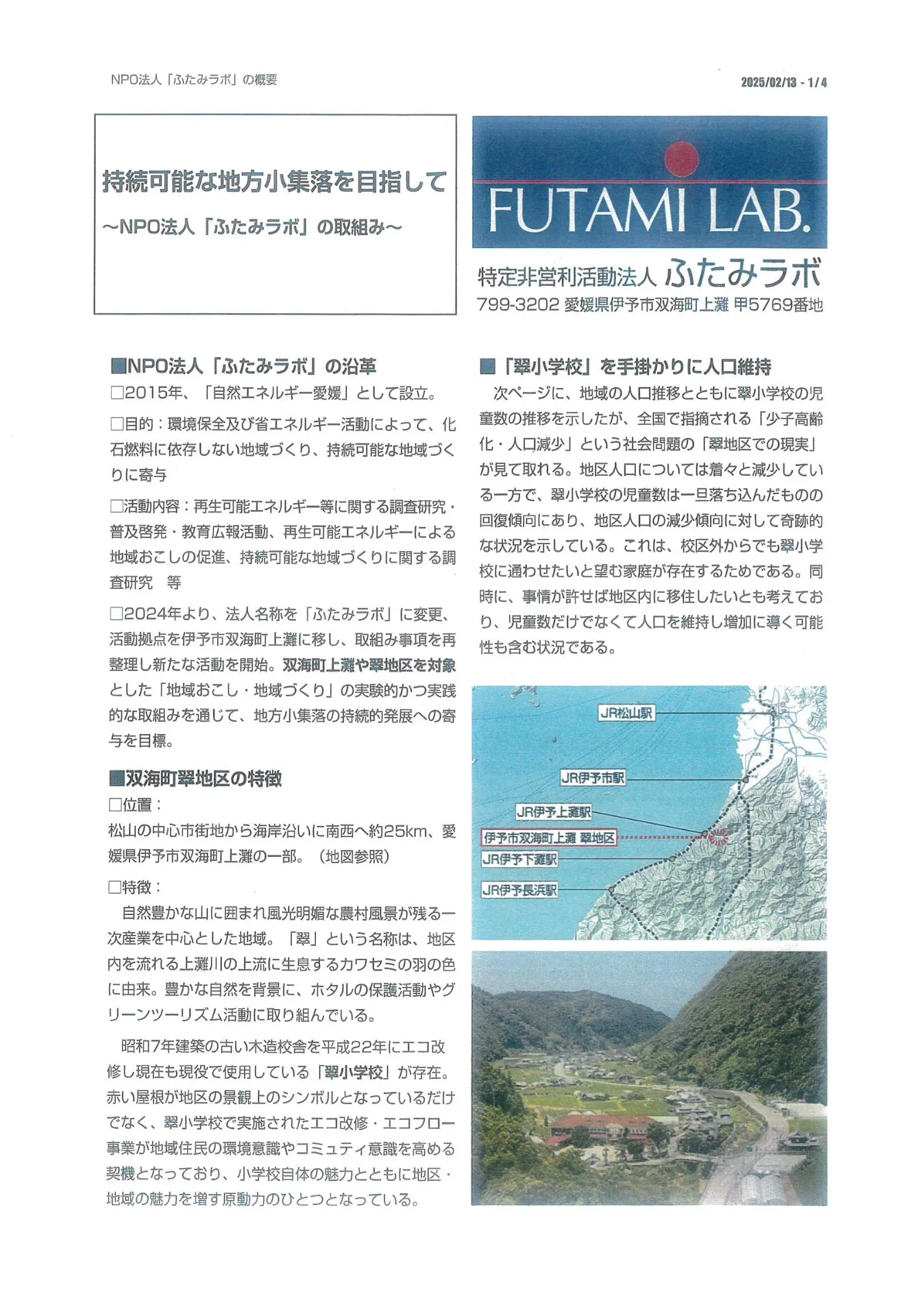 NPO法人ふたみラボの活動及び上灘川水量調査報告会への参加